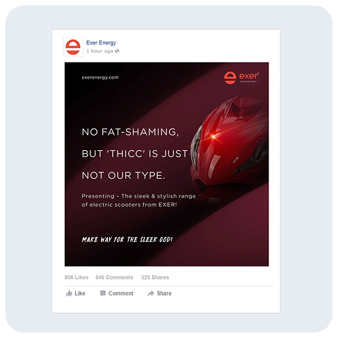 “Don’t sell specs, sell the feeling.” That was the clear (and honestly speaking, refreshing) brief when Exer Energy came to us. Riding an Exer e-scooter wasn’t about numbers on a sheet, it was about looking good, feeling smooth, and turning heads while you’re at it. That sparked the idea of ‘The Sleek God’ (like Greek God, geddit?) a playful, pop-culture nod that perfectly mirrored the scooter’s design and the rider’s attitude. We rolled out this idea through a launch campaign in phases: teasers that built curiosity, a bold reveal of The Sleek God, and follow-up creatives that spotlighted individual features without killing the vibe. On social media, the content stayed true to the brand’s personality: fun, engaging, confident and never trying too hard. The campaign achieved what it was made for: announcing the arrival of Exer on the e-scooter scene.