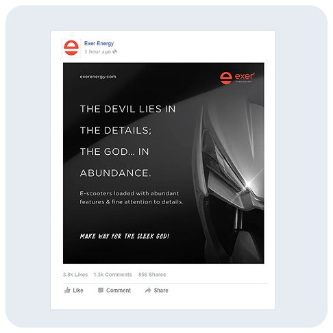 “Don’t sell specs, sell the feeling.” That was the clear (and honestly speaking, refreshing) brief when Exer Energy came to us. Riding an Exer e-scooter wasn’t about numbers on a sheet, it was about looking good, feeling smooth, and turning heads while you’re at it. That sparked the idea of ‘The Sleek God’ (like Greek God, geddit?) a playful, pop-culture nod that perfectly mirrored the scooter’s design and the rider’s attitude. We rolled out this idea through a launch campaign in phases: teasers that built curiosity, a bold reveal of The Sleek God, and follow-up creatives that spotlighted individual features without killing the vibe. On social media, the content stayed true to the brand’s personality: fun, engaging, confident and never trying too hard. The campaign achieved what it was made for: announcing the arrival of Exer on the e-scooter scene.